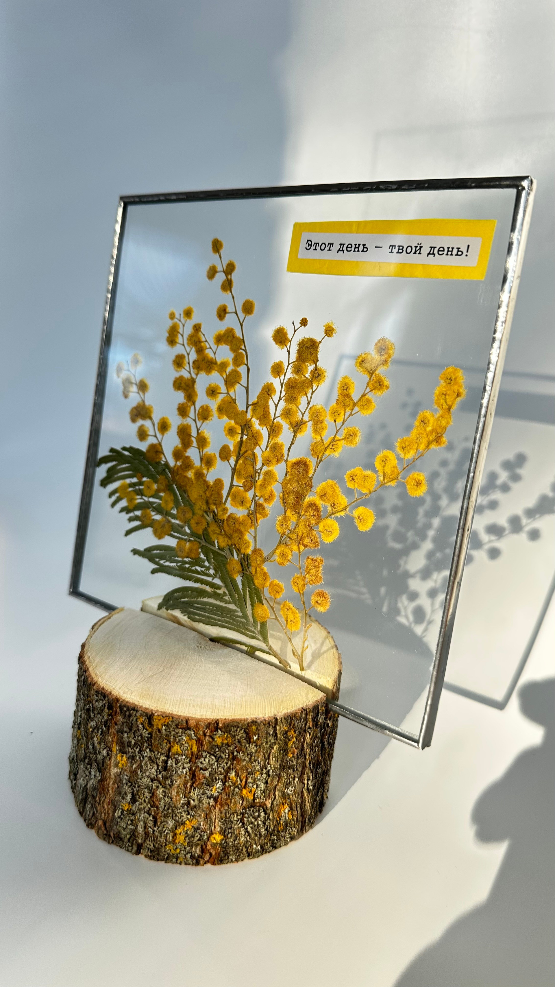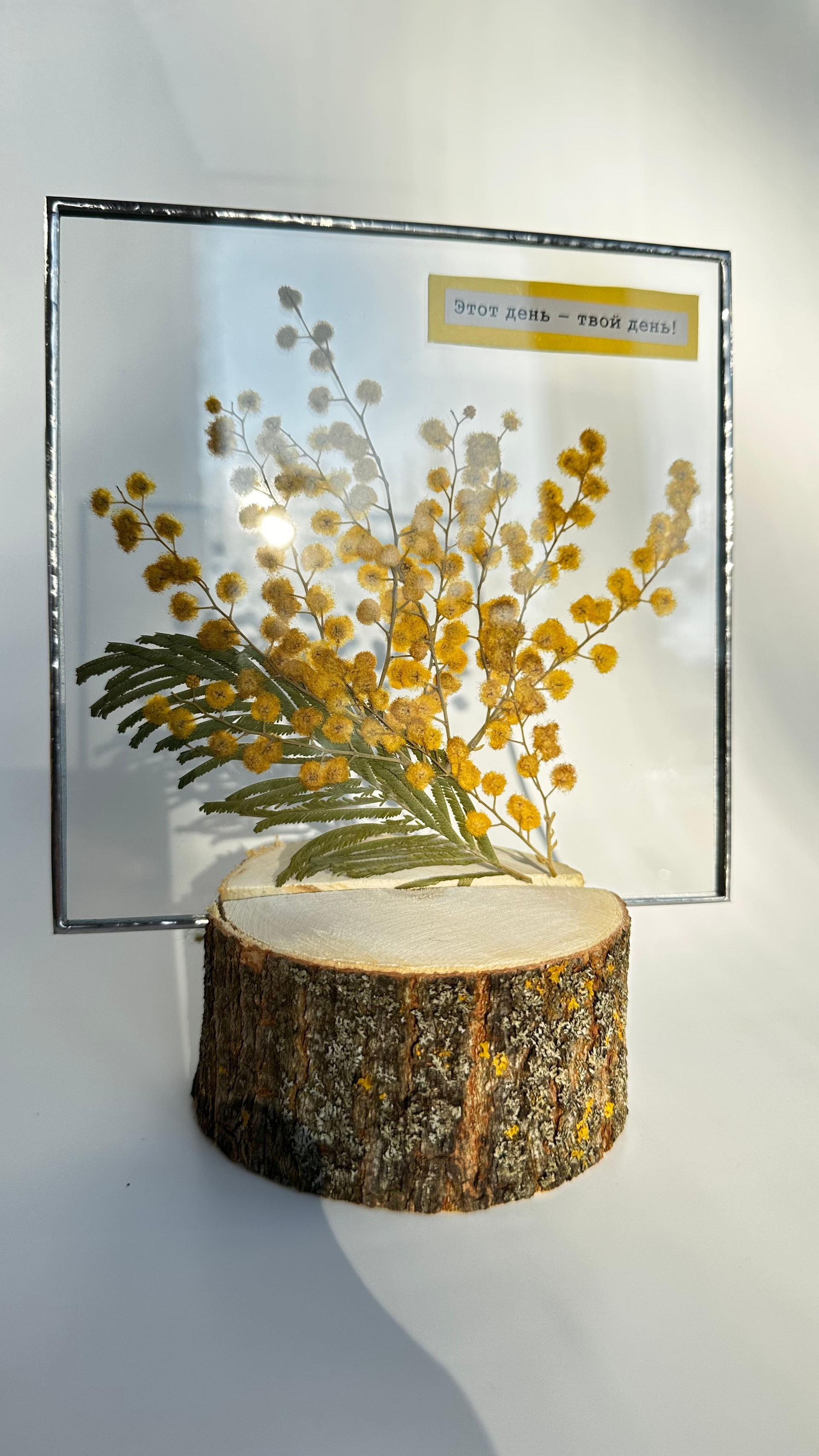 Витраж с сухоцветами квадрат 15 см
